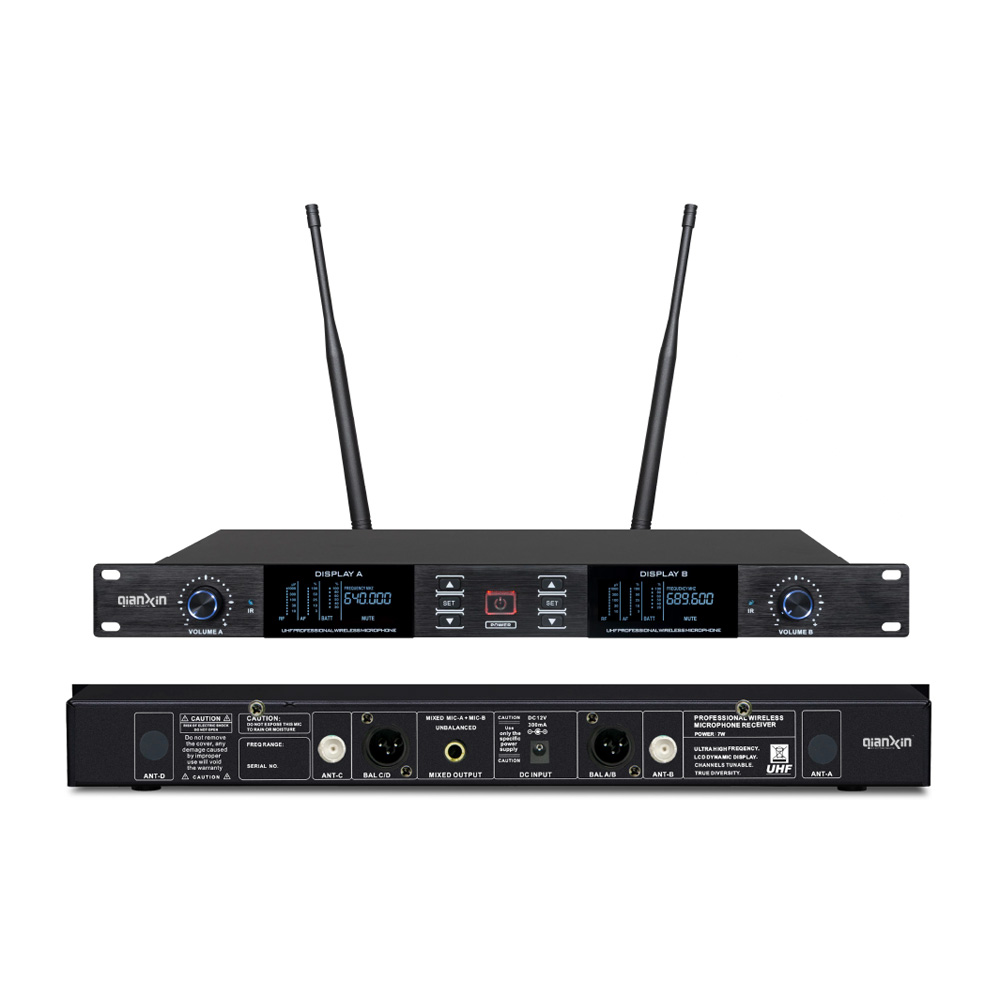 Wireless UHF dual channels system, with two hand help transmitters with LCD display | |
